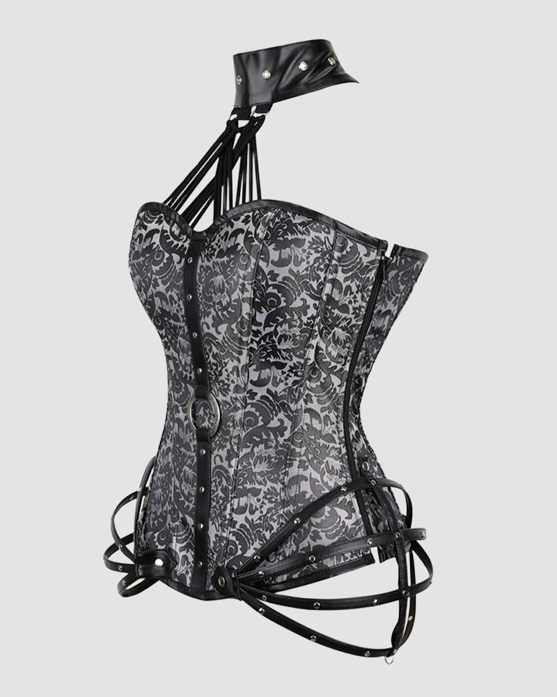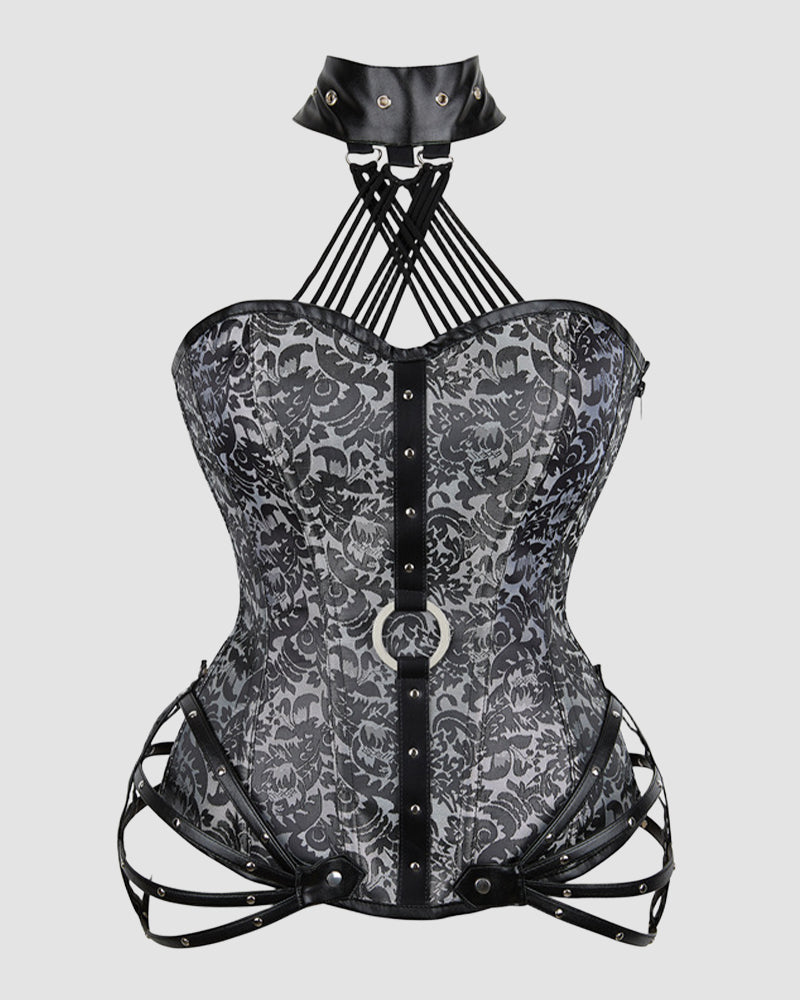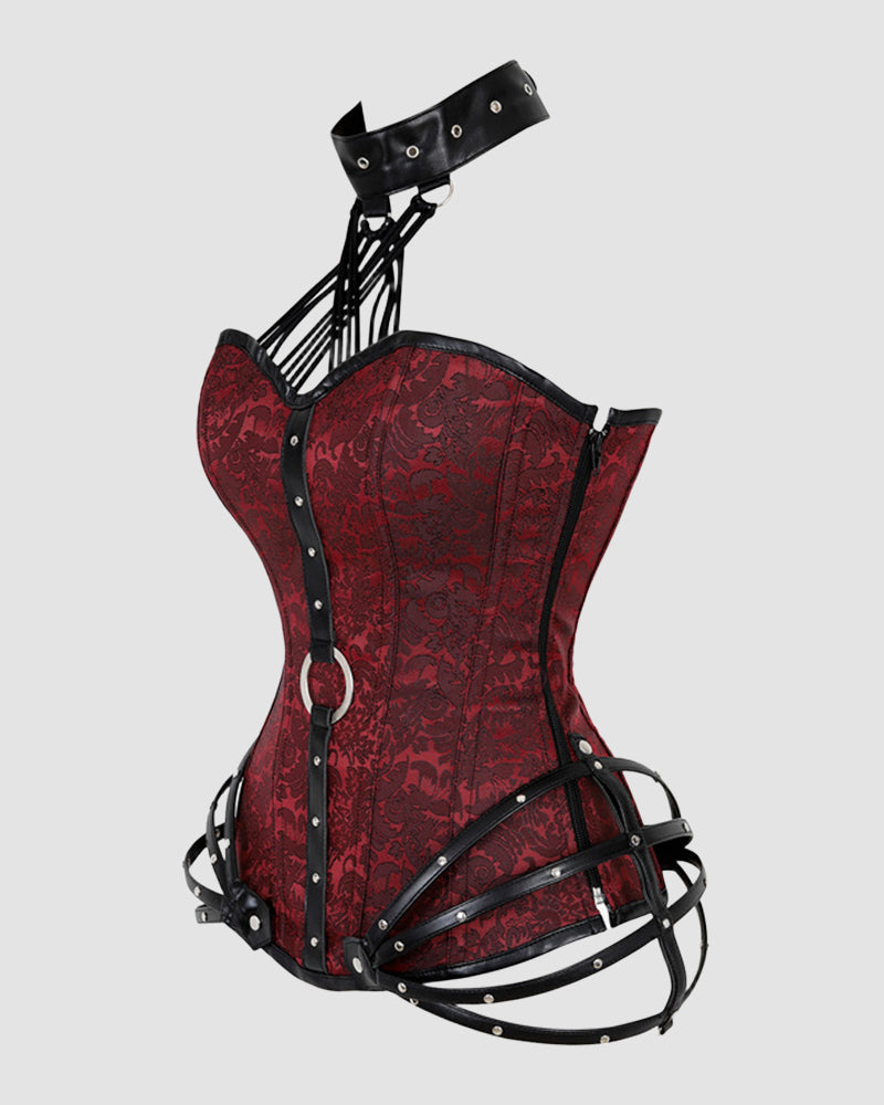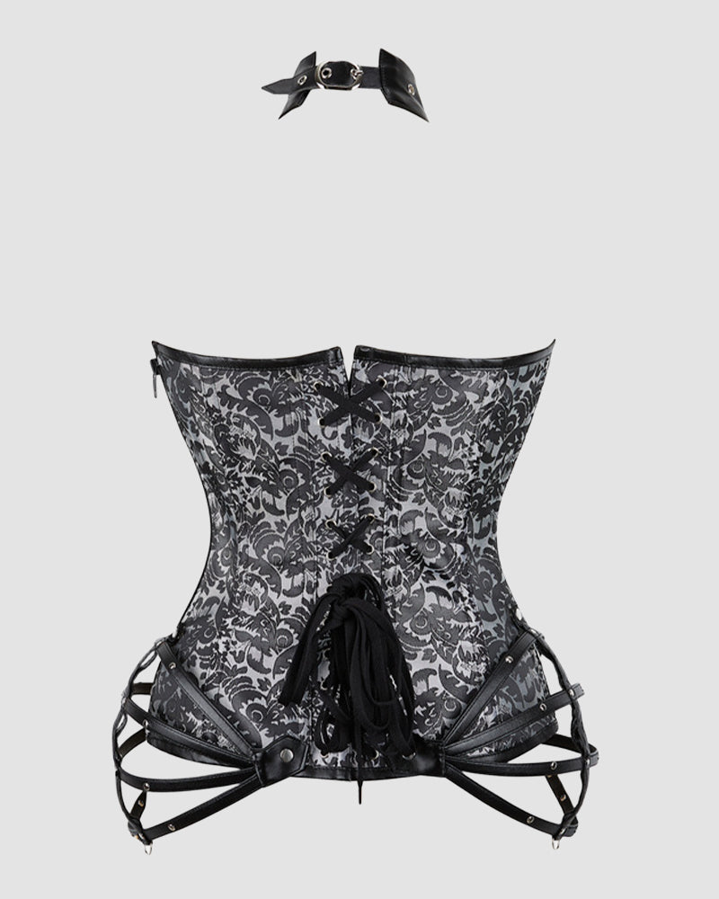 Lace Punk Cut Out Crotchless Pu Bodysuit