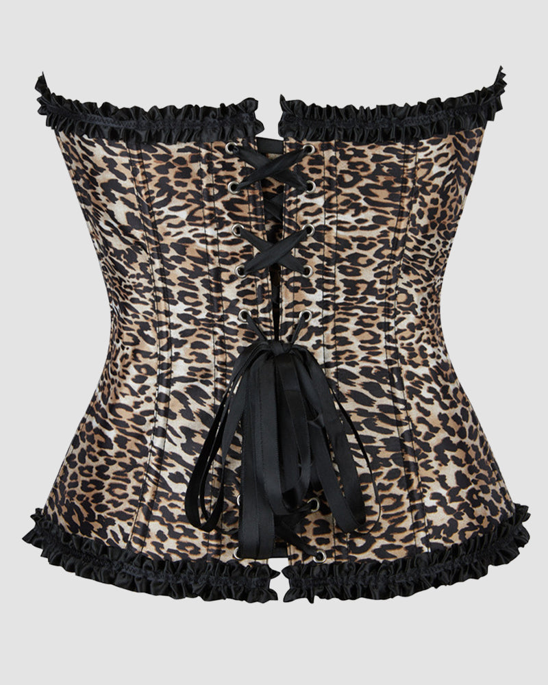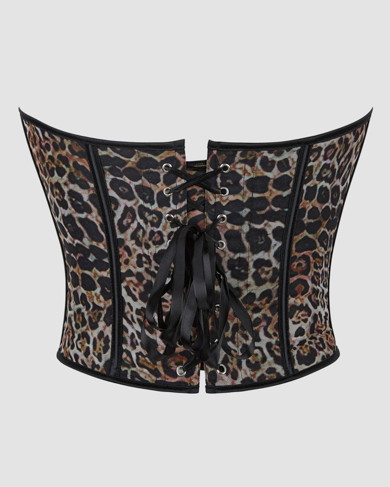 Cow Print Hollow Out Lingerie Set with Garter Belt