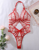 Red Romantic Heart Lace Halter Bodysuit