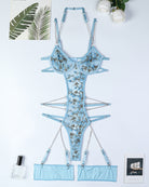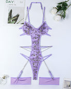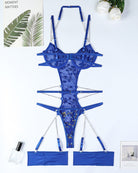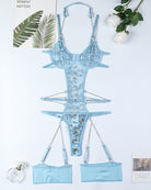 - Designmerkmale der Bodysuit-Dessous: Diese Spitzenunterwäsche verfügt über eine zarte Muschelkante am Körbchenrand, die halb durchsichtig ist, einen Neckholder, einen Akzent aus Satinschleife und einen eng anliegenden Taillenteil, der Ihre Kurven betont.