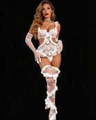 Lace Bodysuit Set with Long Gloves and Ruffled Stockings