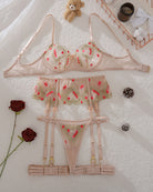 Floral Embroidery Underwire Bra & Garter Set