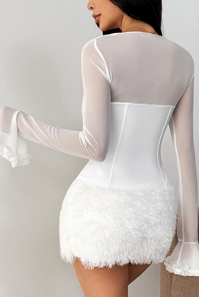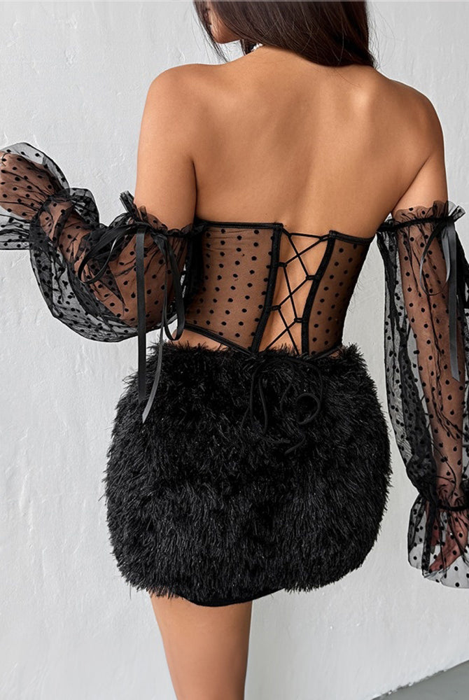 Schulterfreier, langärmliger Netz-Body