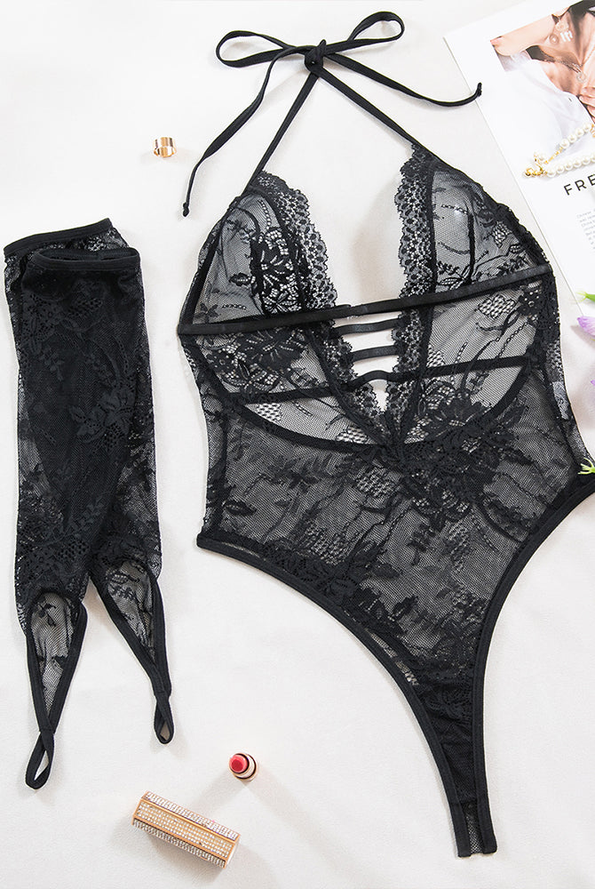 Hochgeschnittene Bodysuit-Sets aus transparentem Netzstoff