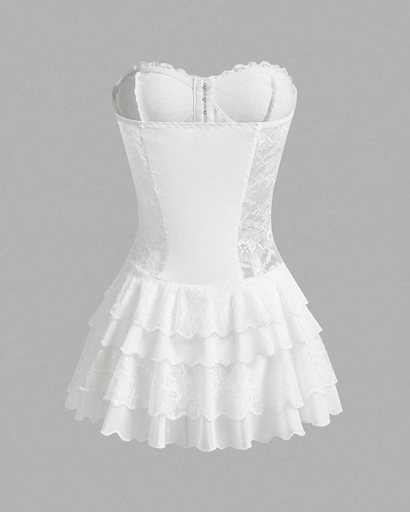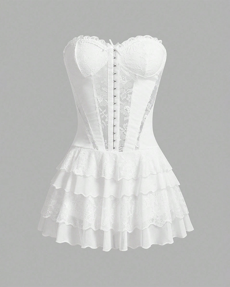 Elegant White Lace Corset Tutu Dress
