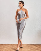 - The Classic Solid Fringe Cut Out Slit Midi Dress blends chic sophistication with bold details.