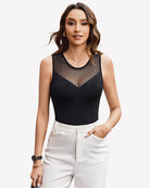 - This mesh bodysuit features with thong back that provides a seamless look under clothing.Sleeveless bodysuits equipped with two snap closures at the gusset for easy wear and take off.
