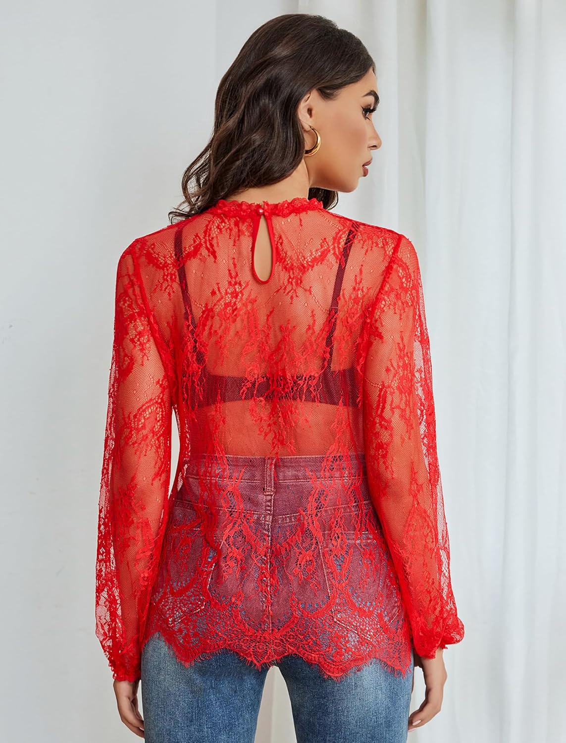 - STRETCH FABRIC: Women's lace tops are made of soft, stretchy fabric, offering a gentle feel against the skin and a cozy fit while maintaining style and comfort.