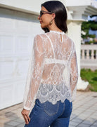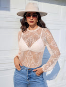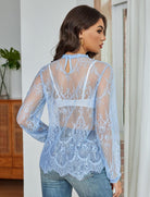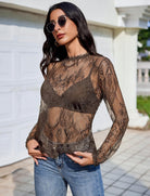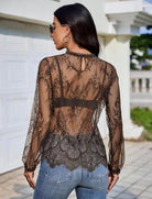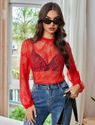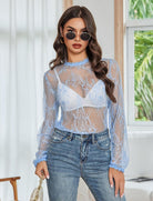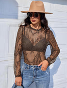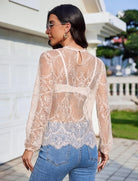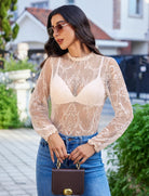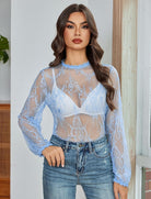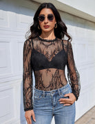 Floral Lace Mesh Top Long Sleeve Sheer Shirts