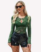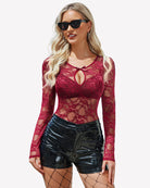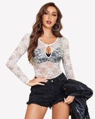 - FASHION DESIGN: "Snap Closure" bodysuit is convenient for you to put on and take off, featuring a keyhole v-neckline and sheer lace fabric, see-through lace material with intricate patterns