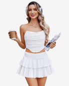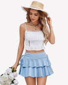 • Features: This double layered ruffle skirt shows unique style. This micro skirt has an adjustable side drawstring for a custom waist fit (no sizing troubles!), even pleats for lively movement, and a fluttery tiered design with Y2K charm—cute, edgy and functional.