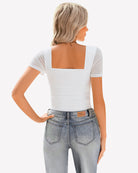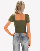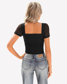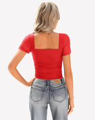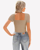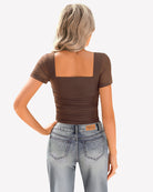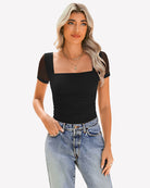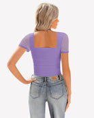 - Design: square neck bodysuits for women, featuring a sheer mesh short sleeve, square neck, with layered ruched decoration from chest to waist with soft material, bringing a sense of detail design to basic styles.