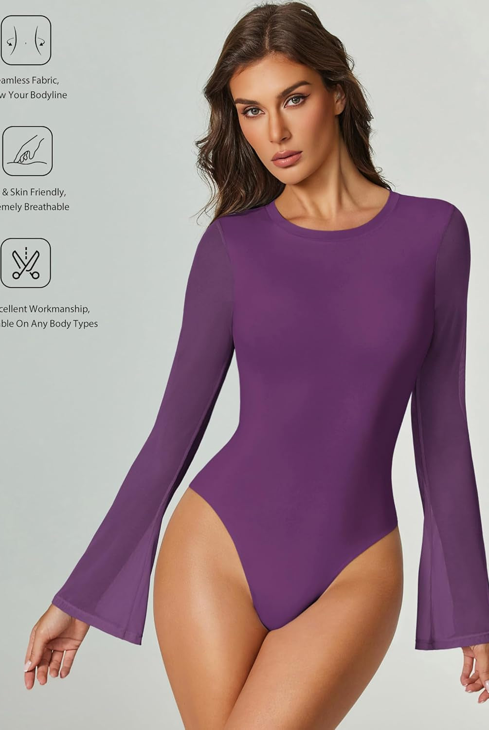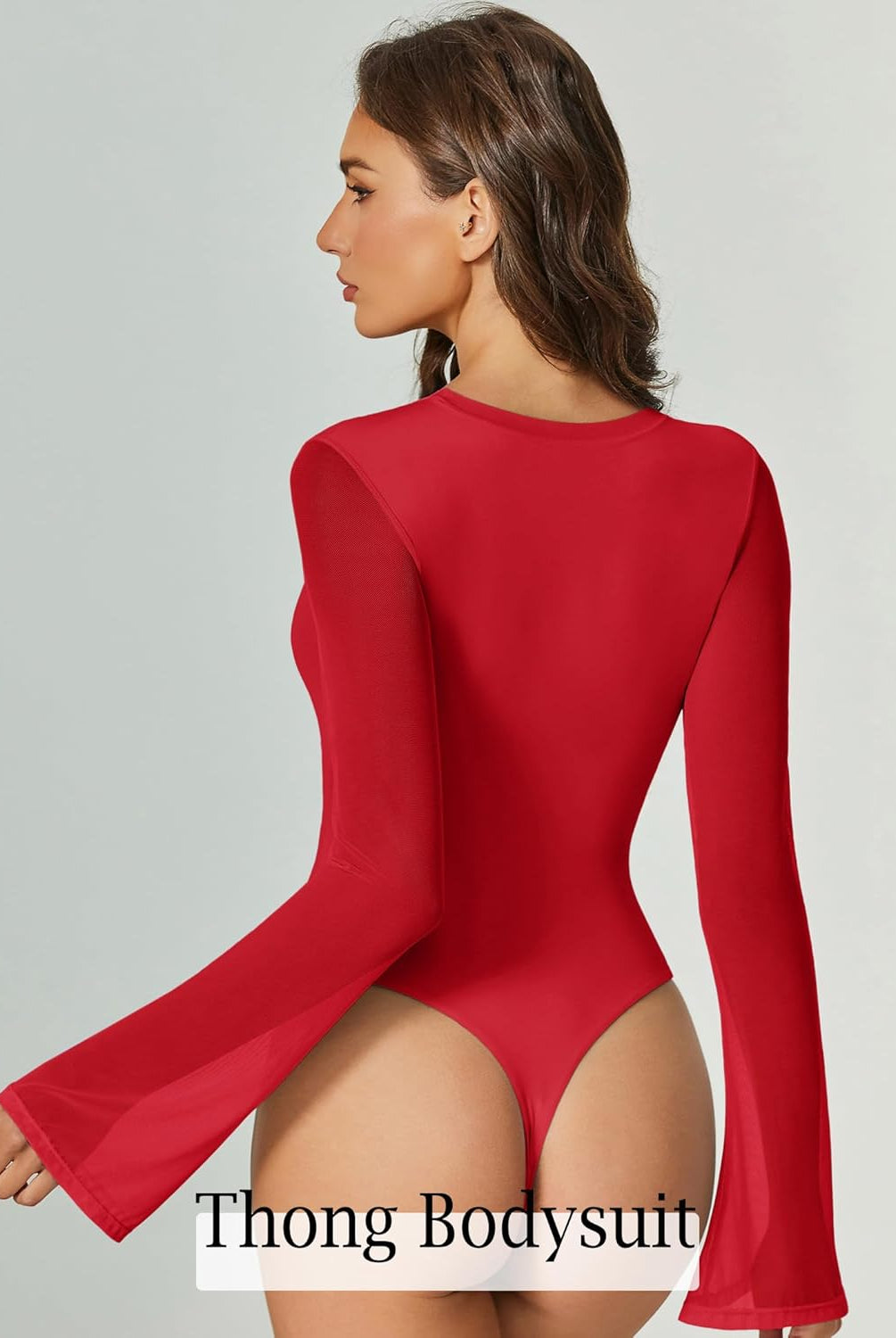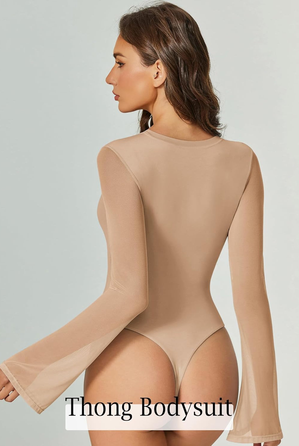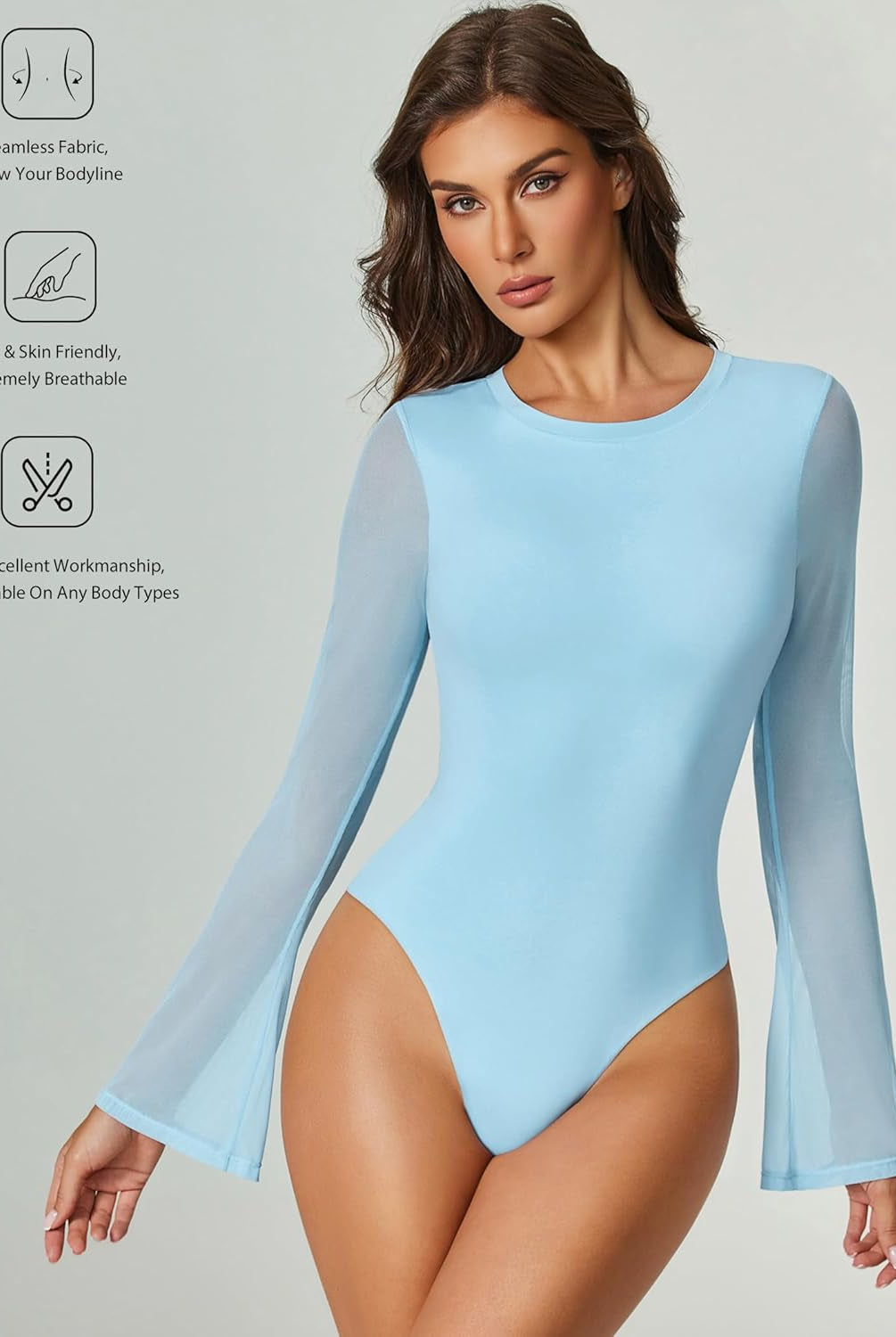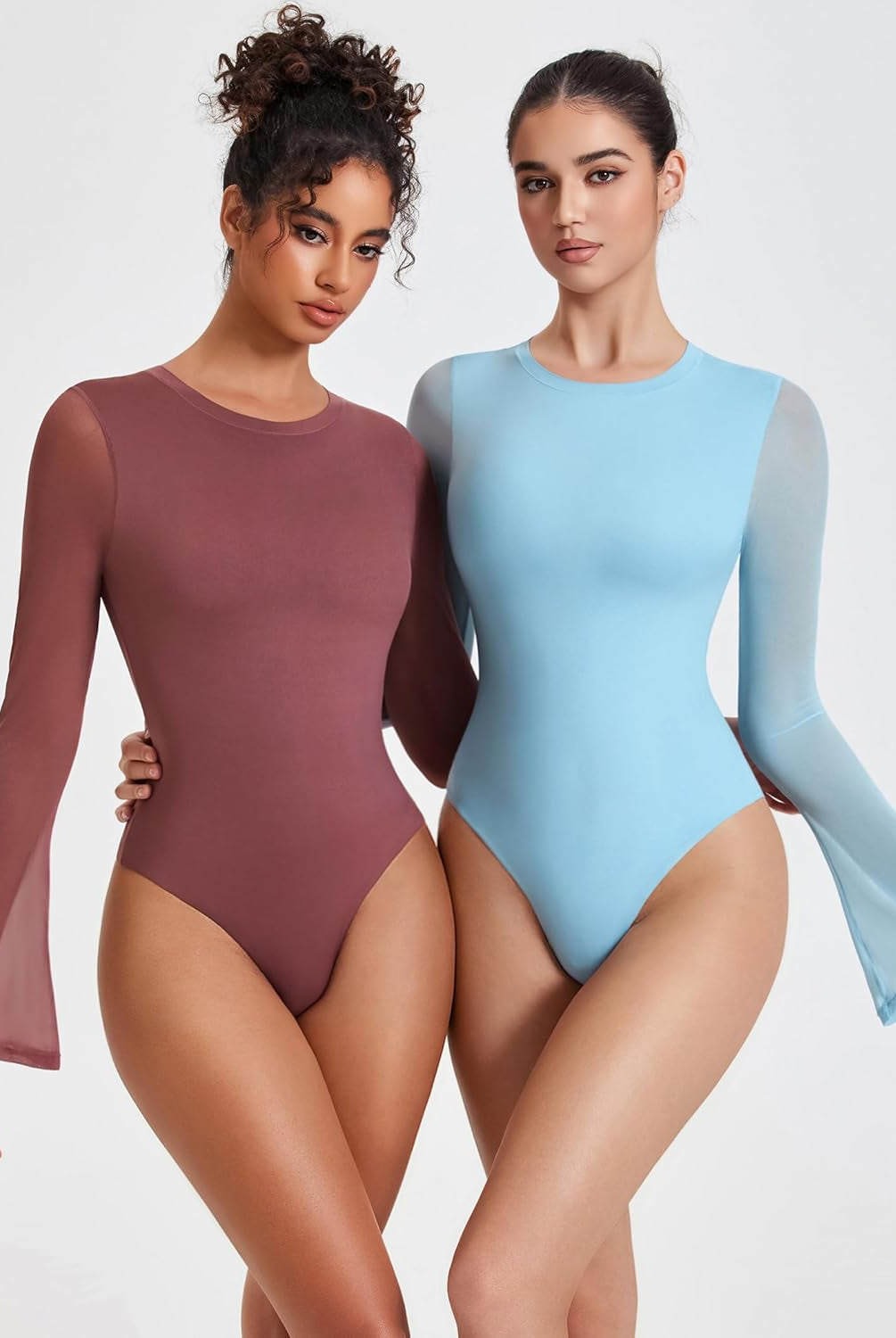 Bell Long Sleeve Bodysuits Mesh Leotard Tops