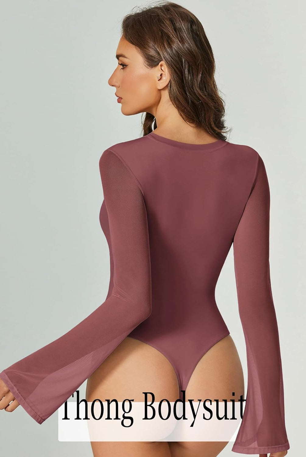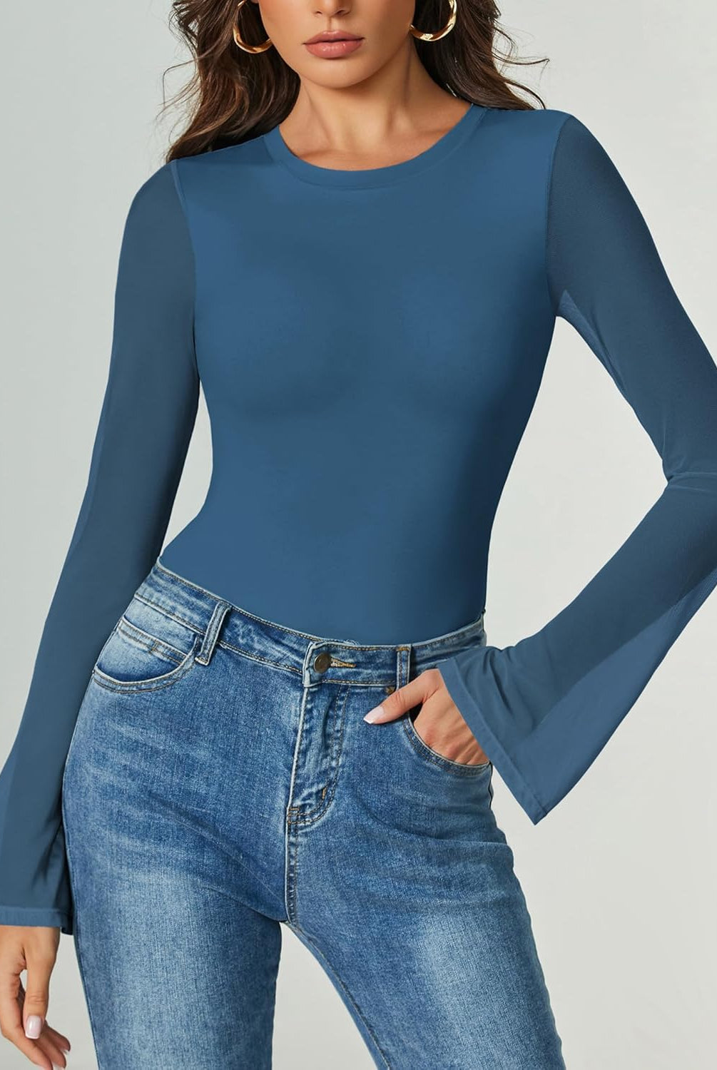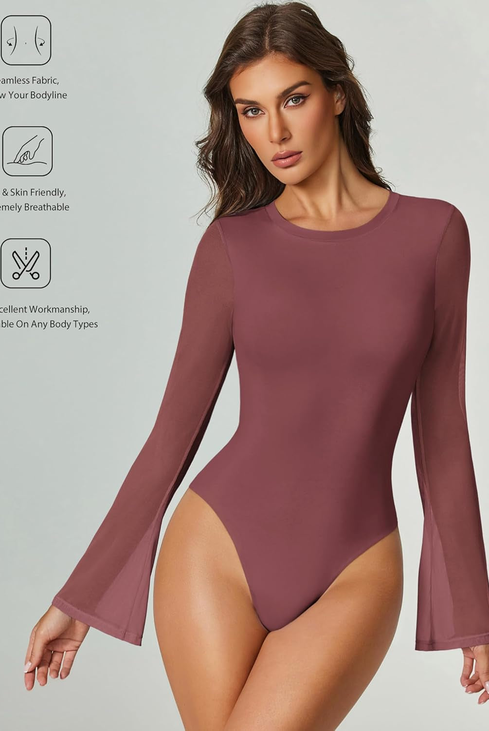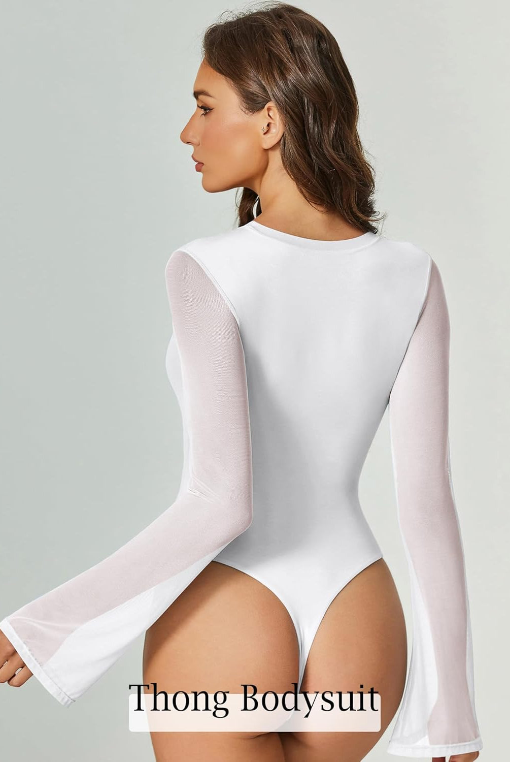 Bell Long Sleeve Bodysuits Mesh Leotard Tops