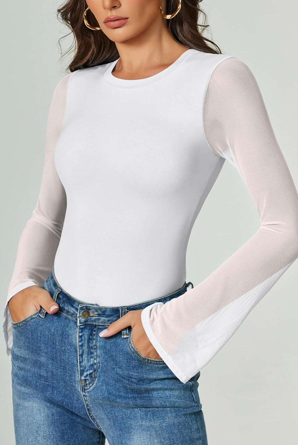 Long Sleeve Sheer Mesh Bodysuit