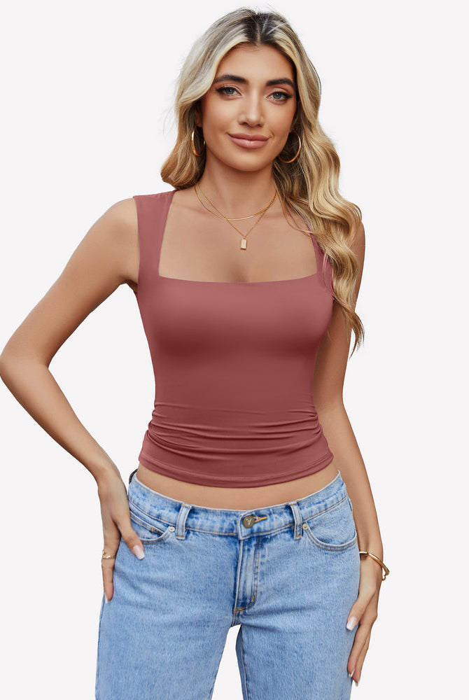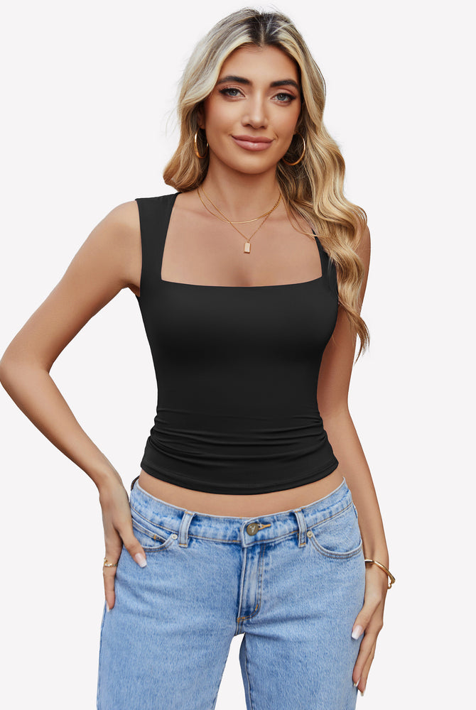 Square Neck Tank Top Basic Crop Tops