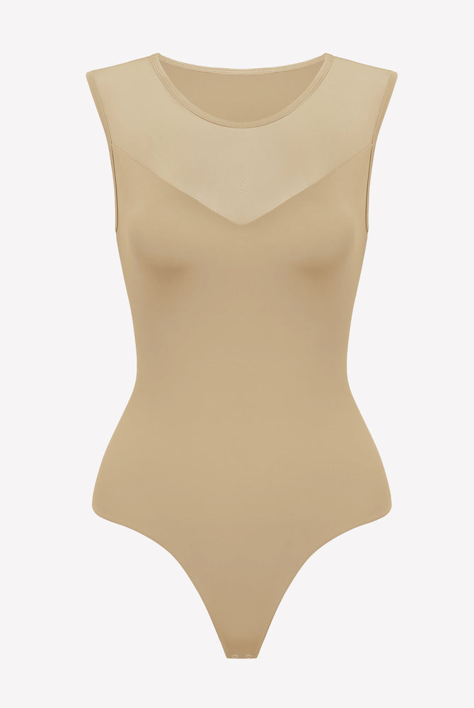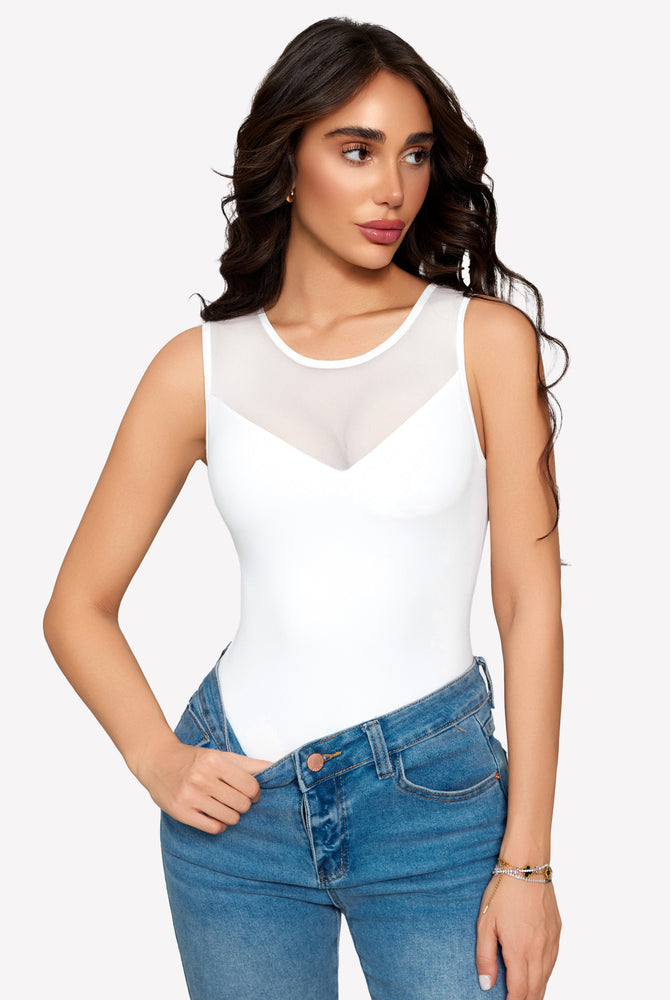 Mesh Crew Neck Sleeveless Bodysuit