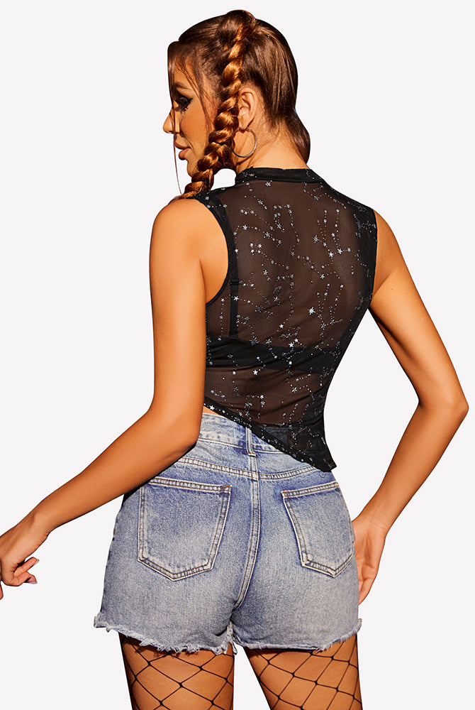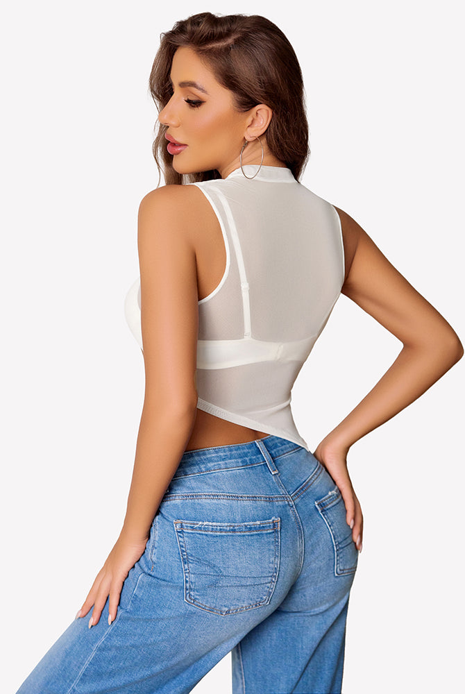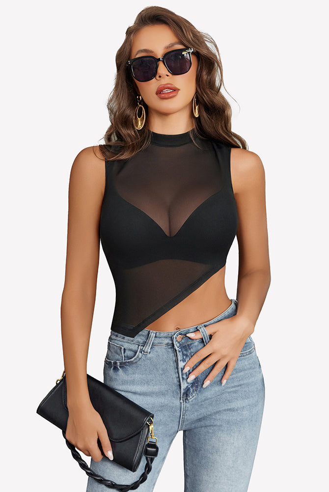 Sheer Mock Neck Tank Asymmetrical Top