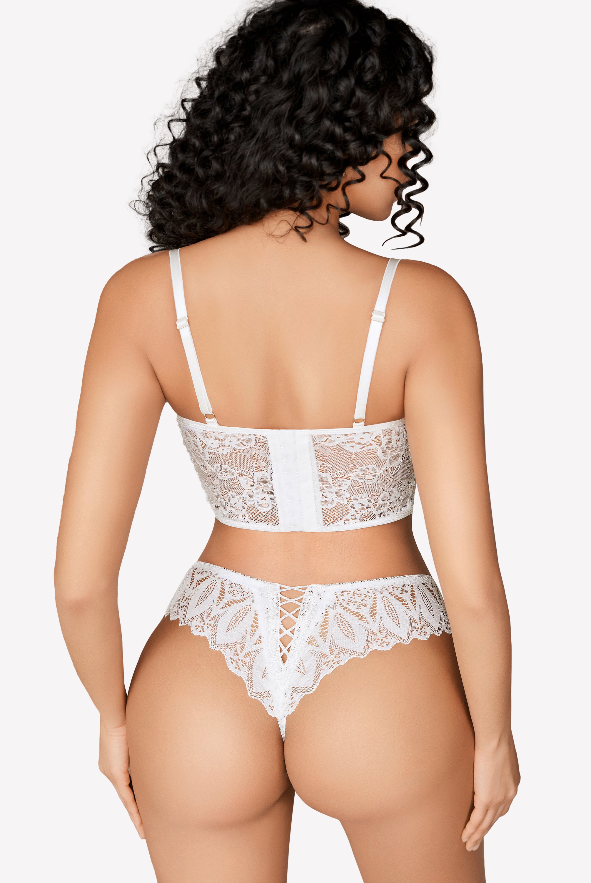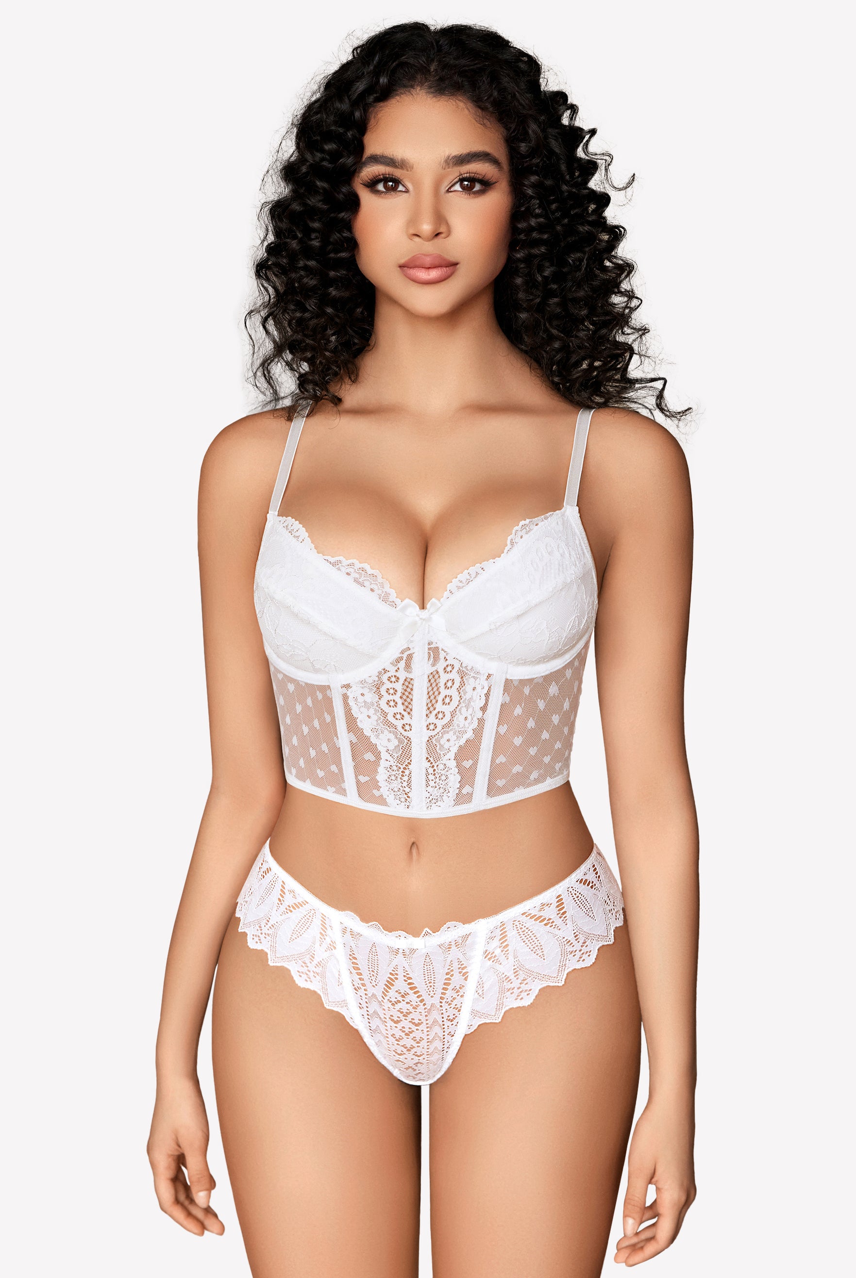 White lace lingerie set, feminine design with delicate lace, Avidlove panties for a sexy look.