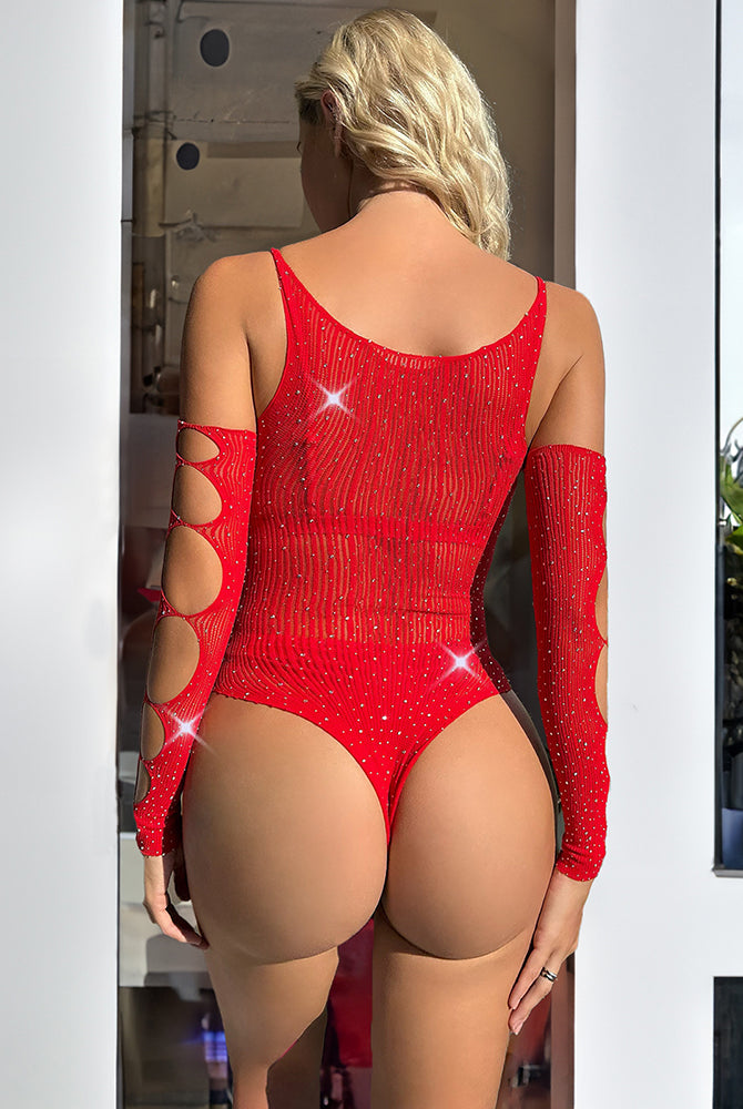 Rhinestone Bodysuit with Cut-Out Gloves