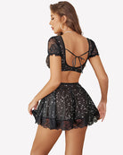 - Package Content: 1 x floral lace top, 1 x mesh short skirt, 1 x matching thongs