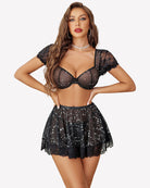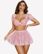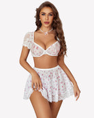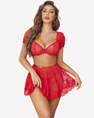 - Design: This lingerie comes with a sexy top with underwire and puff sleeve, a mini skirt with a elastic waistband, and a matching thong, which results in a perfectly designed and matched set of lingerie