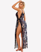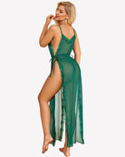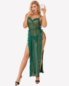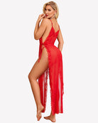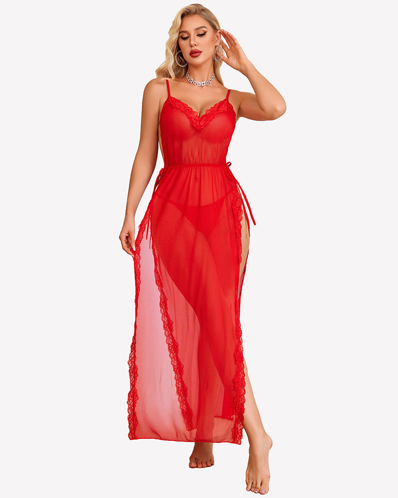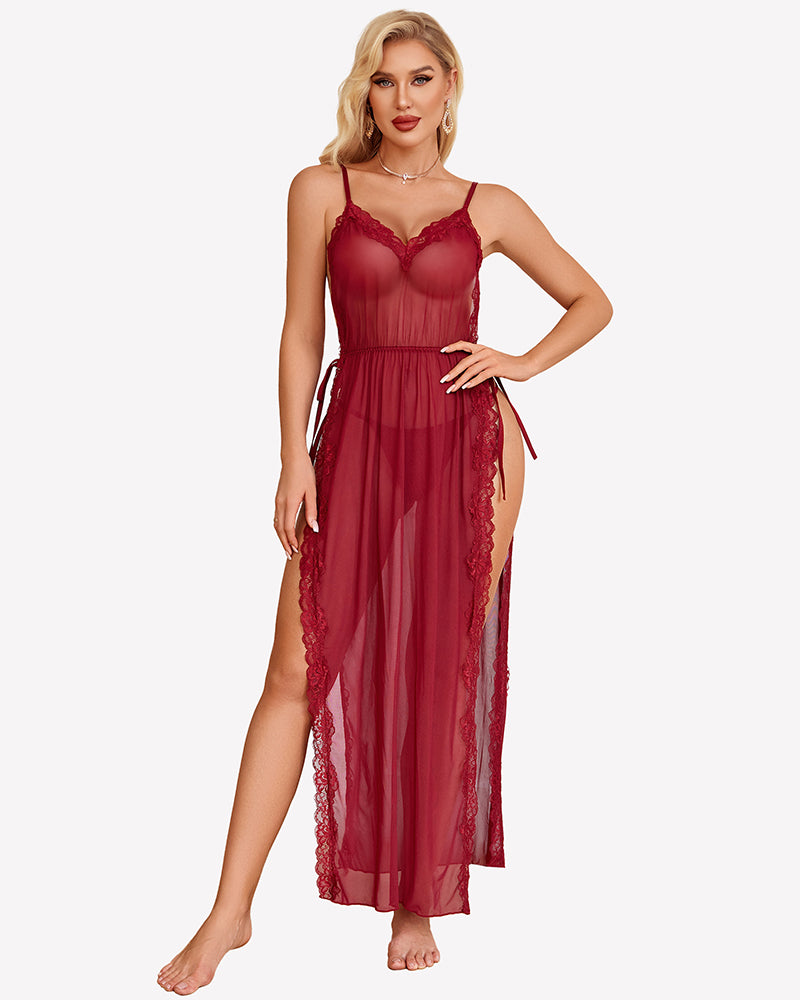 - Exquisite lace adorns the neckline and slits on both sides, adding movement and charm to this sexy lingerie dress