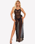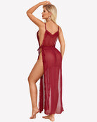 - DESIGN: This sexy long nightgown features a delicate V-neck, double side slits, adjustable spaghetti straps, and an adjustable drawstring design, which improves the fit and support of the sheer nightgown while maintaining an elegant silhouette.