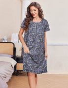 Moo Moos for Women: Women Sleepshirts features printed design, button closure, beautiful victorian style, length blow the knee. Two side pockets are perfect for keeping carrying keys phones and more.