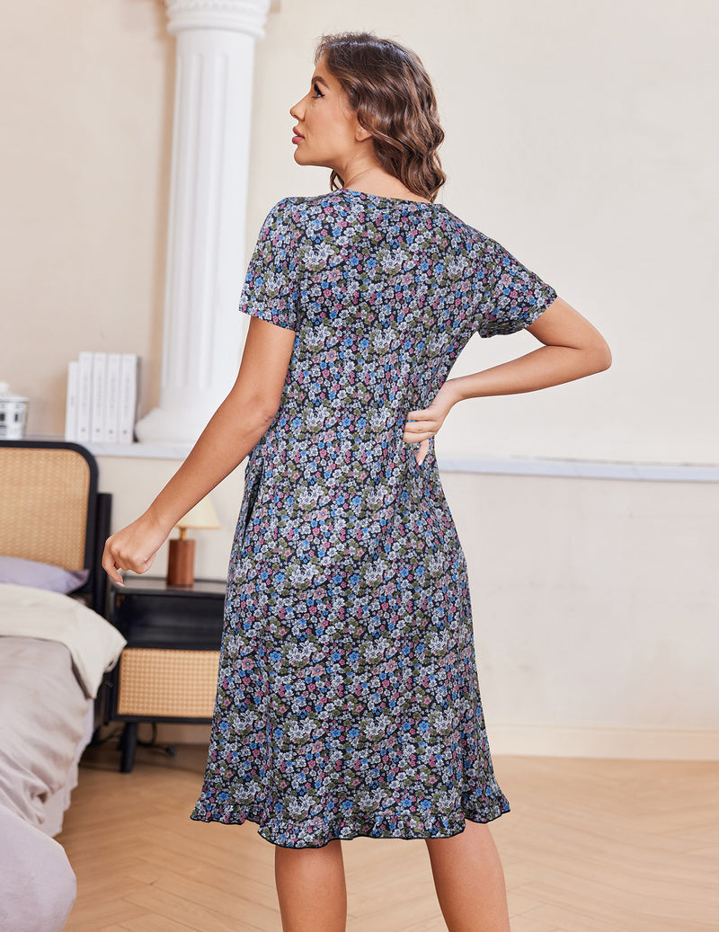 Ekouaer Button Front Short Sleeve Floral Mumu Dress