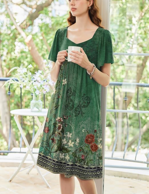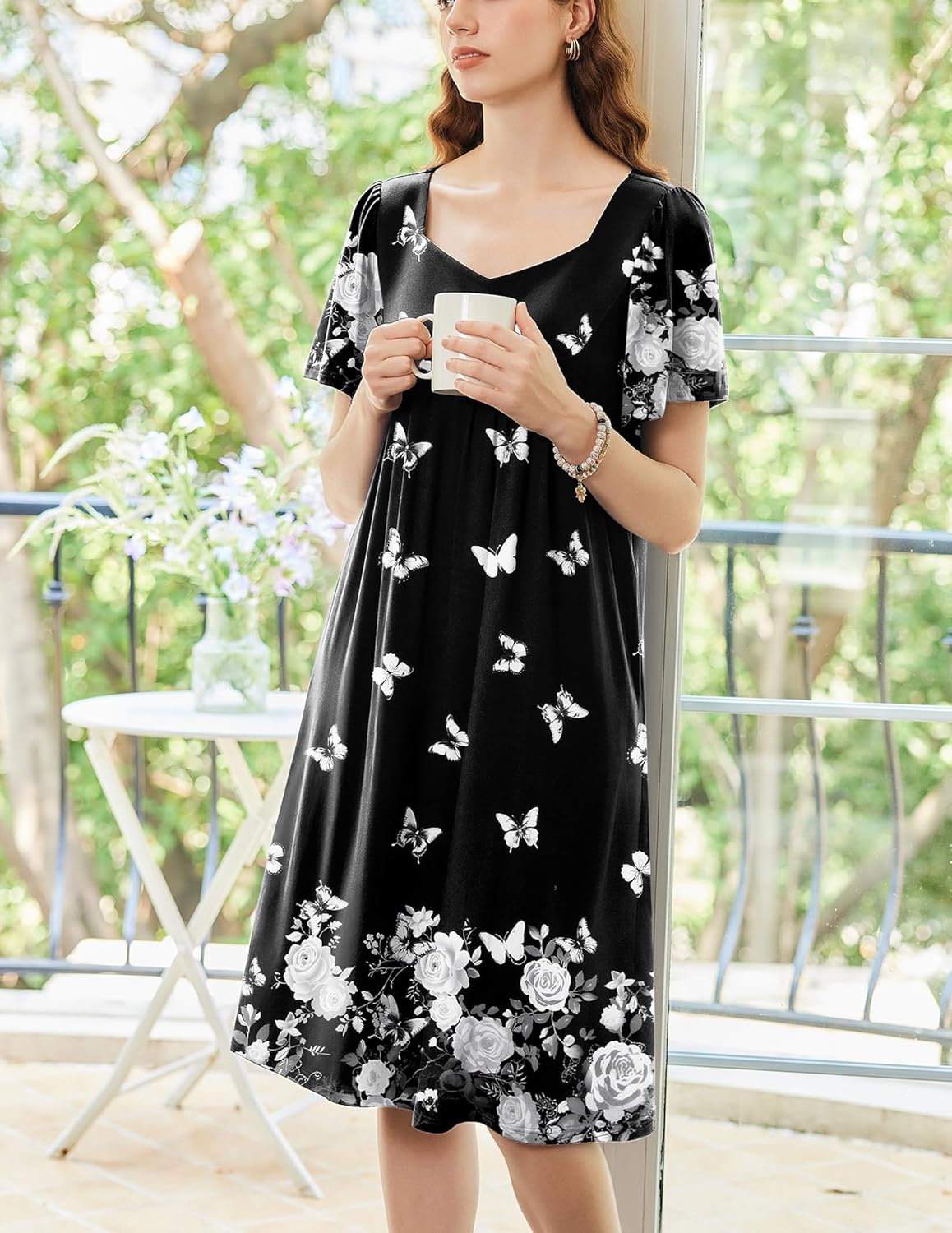 Size: Due to individual body shape differences, the length of the mumu dress sleepwear will vary, please check the size chart before ordering. The floral nightgown will easily fit everyone and is available in sizes S-3XL, and the sleeves are also open enough to cover the upper arms