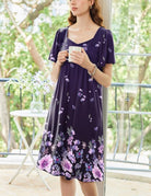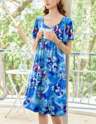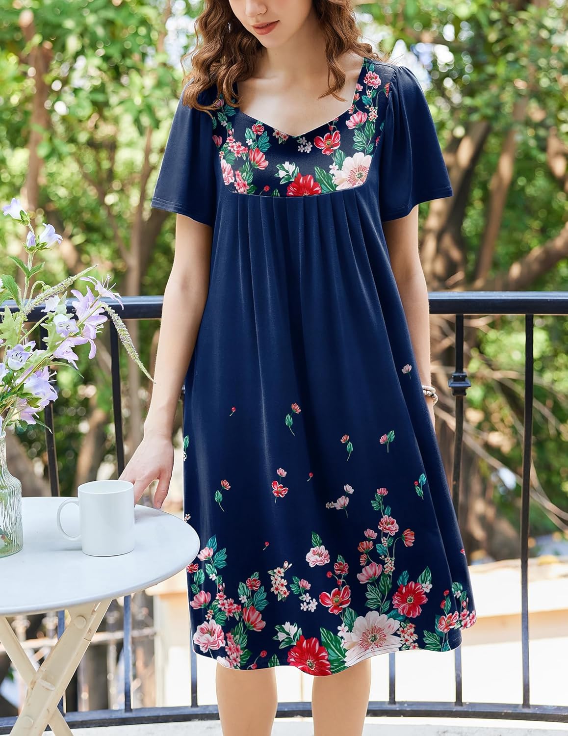 Ekouaer Women's Floral House Dress - Pleated Nightgown