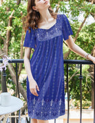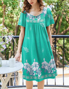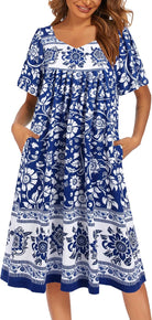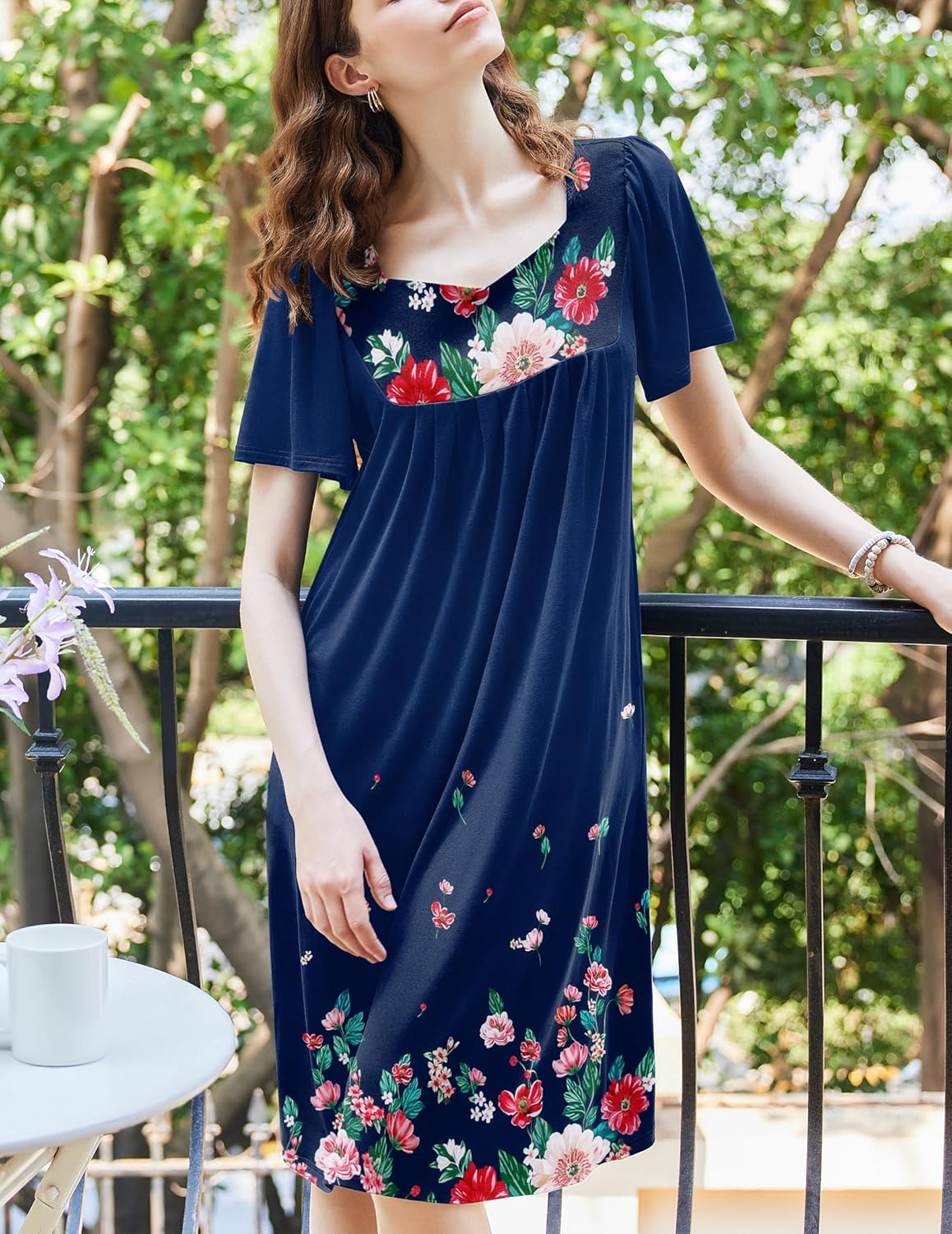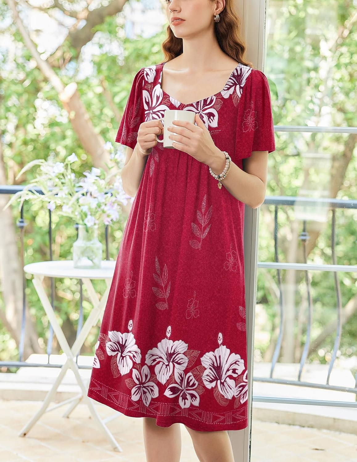 Fabric: The light and breathable fabric of the women's house dress is soft, stretchy, skin-friendly and non-see-through, keeping you cool and comfortable all night long. Easy to care for, machine washable or hand washable. Moo moo dress will not shrink, wrinkle or fade after washing.