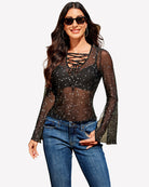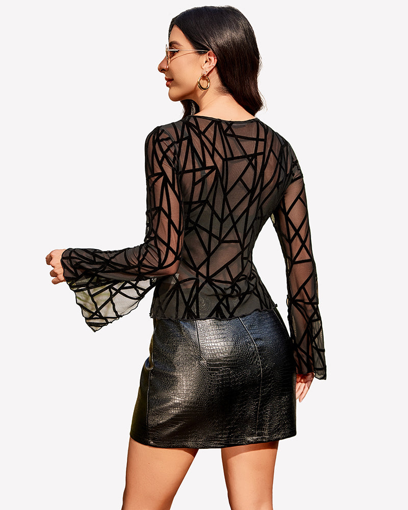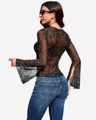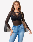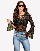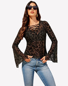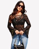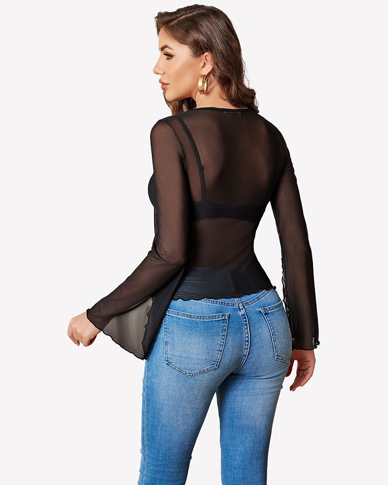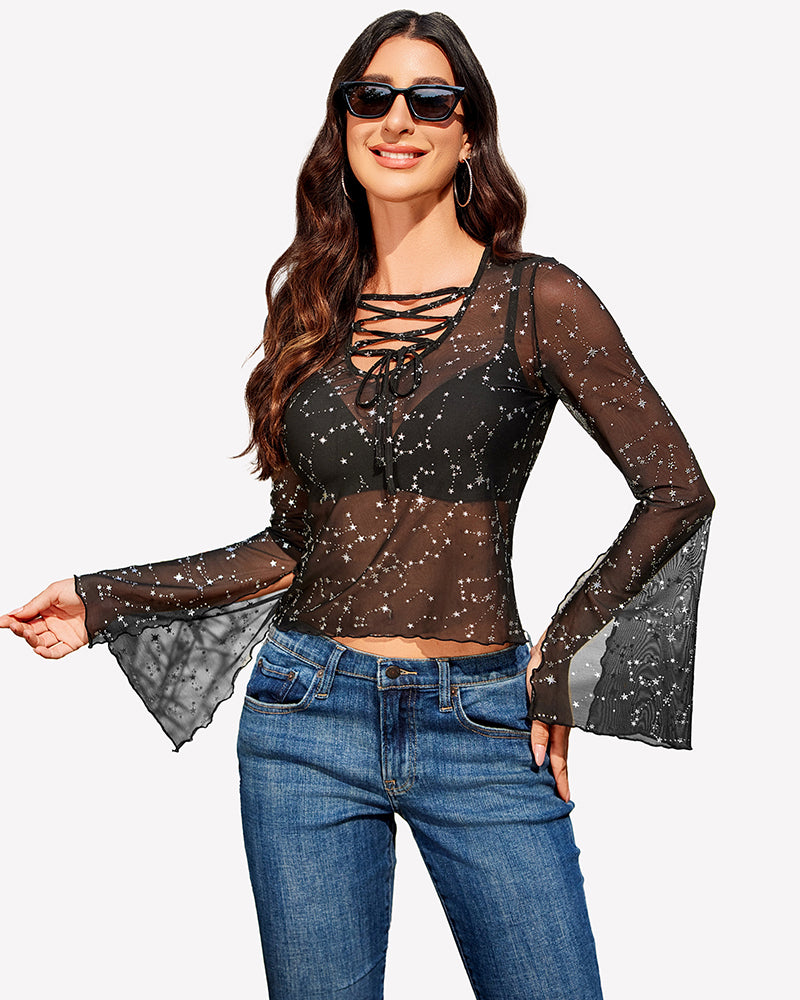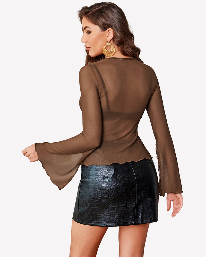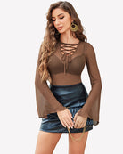 Bell Sleeve Criss Cross V Neck Tops