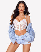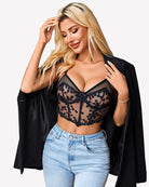 - Bustier Top Bra(No Padding): Sexy flower embroidered bra top features V-neck with heart embroidery and sheer mesh panels for a seductive look, plastic boning and underwire for enhanced shape and comfort.