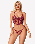 - Material: Lingerie Set is rafted with exquisite heart embroidered mesh fabric for a refined and elegant look, enhance feminine charm and sophistication, sheer mesh panels placed for a seductive and alluring effect(Non-Stretch)
