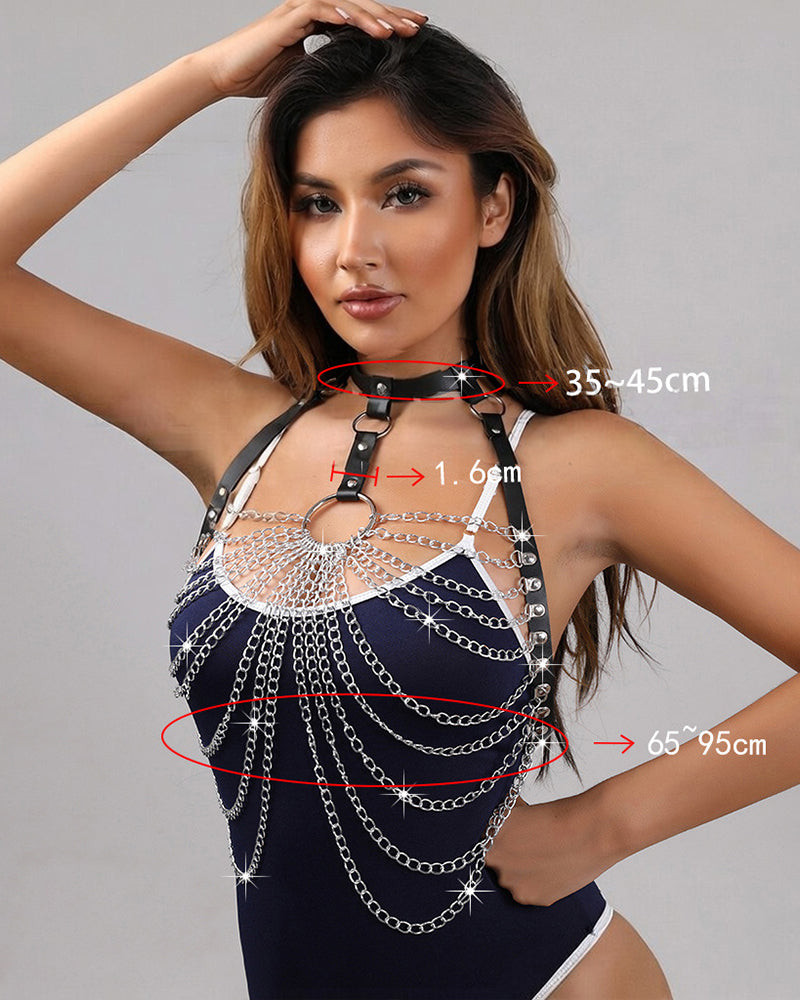 PU Leather Bra Harness Straps Chain