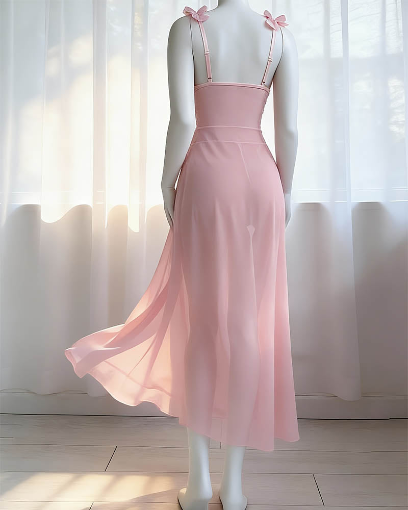 Glitter Halter Mesh Chemise Lingerie Set