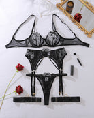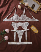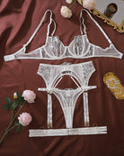 Sheer Embroidered Floral Lingerie Set with Garter Belt