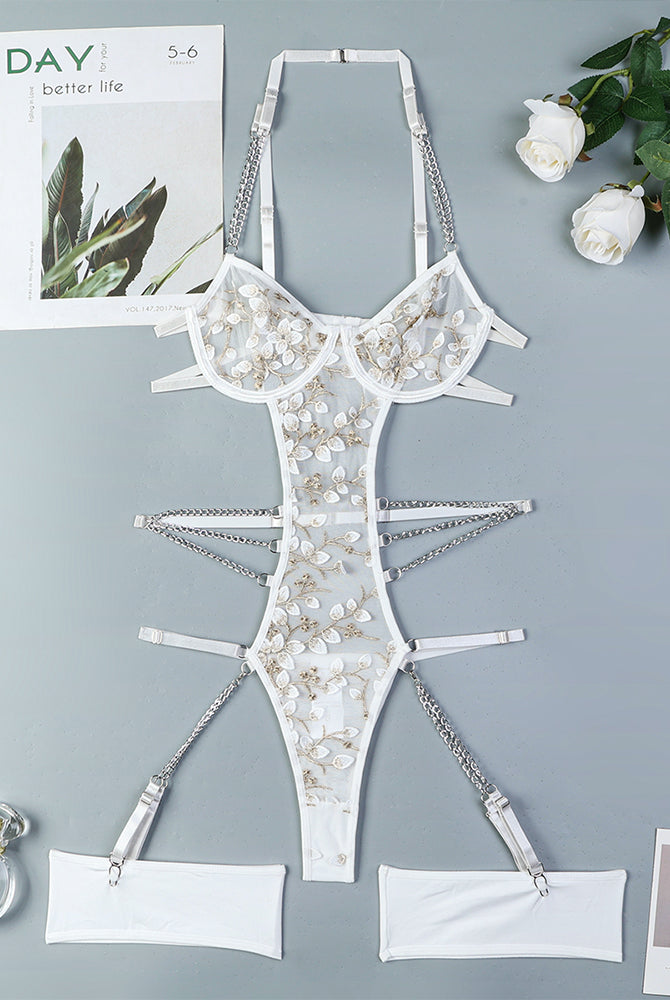 Langes Nachthemd aus Eisseide mit hohem Schlitz