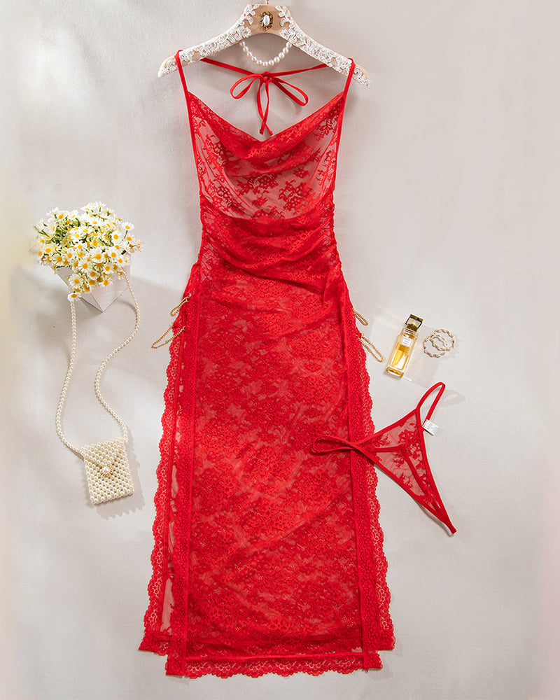 Romantisches Nachthemd aus Spitze mit hohem Schlitz