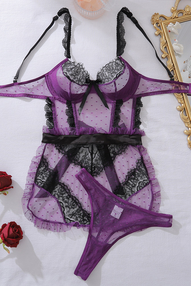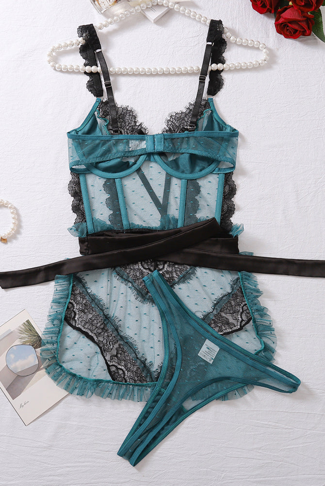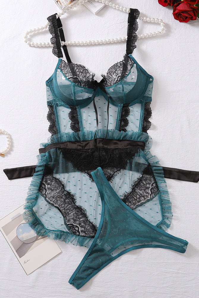 Langes Nachthemd aus Eisseide mit hohem Schlitz