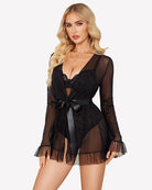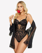 2 Piece Sheer Kimono Robe with Lace Teddy