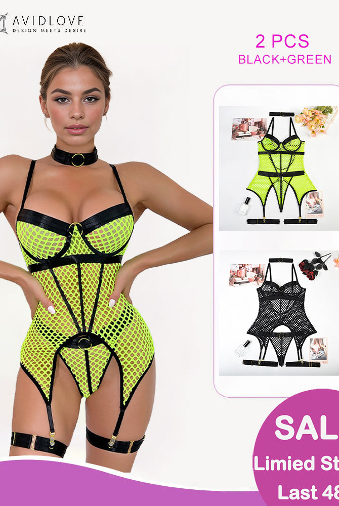 Fishnets Crotchless Jumpsuits with Stockings