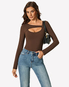 - Women's Trendy: Scoop neck bodysuit with cutout details beautifully accentuates the cleavage and collarbone, creating an elegantly feminine look that's both alluring and refined.