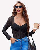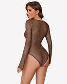 Long Sleeve Bodysuit Sparkle Mesh Top