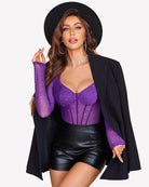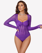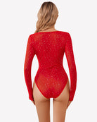 - Long sleeve bodysuit is made of 95% Polyester 5% Spandex, sheer mesh sparkle bodysuits top is comfortable to wear and provides stretchy fit which ensure all-day comfort