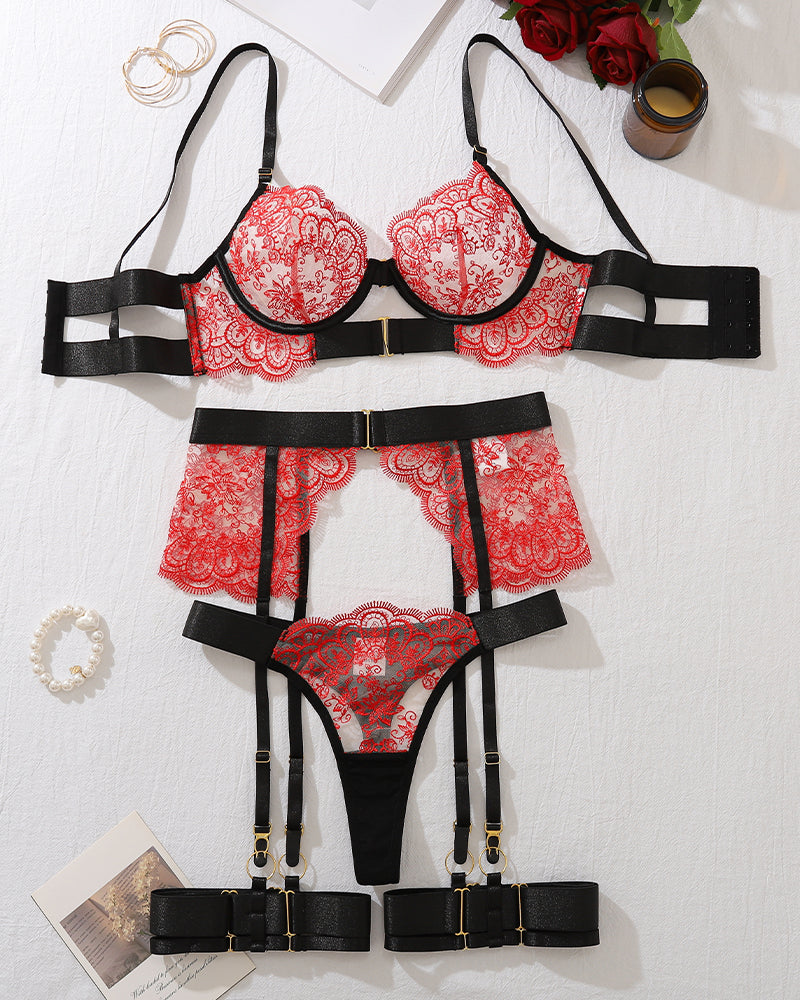 Fuses classic corsetry, sheer floral lace, and bold strap detailing to sculpt the body and ignite desire.