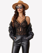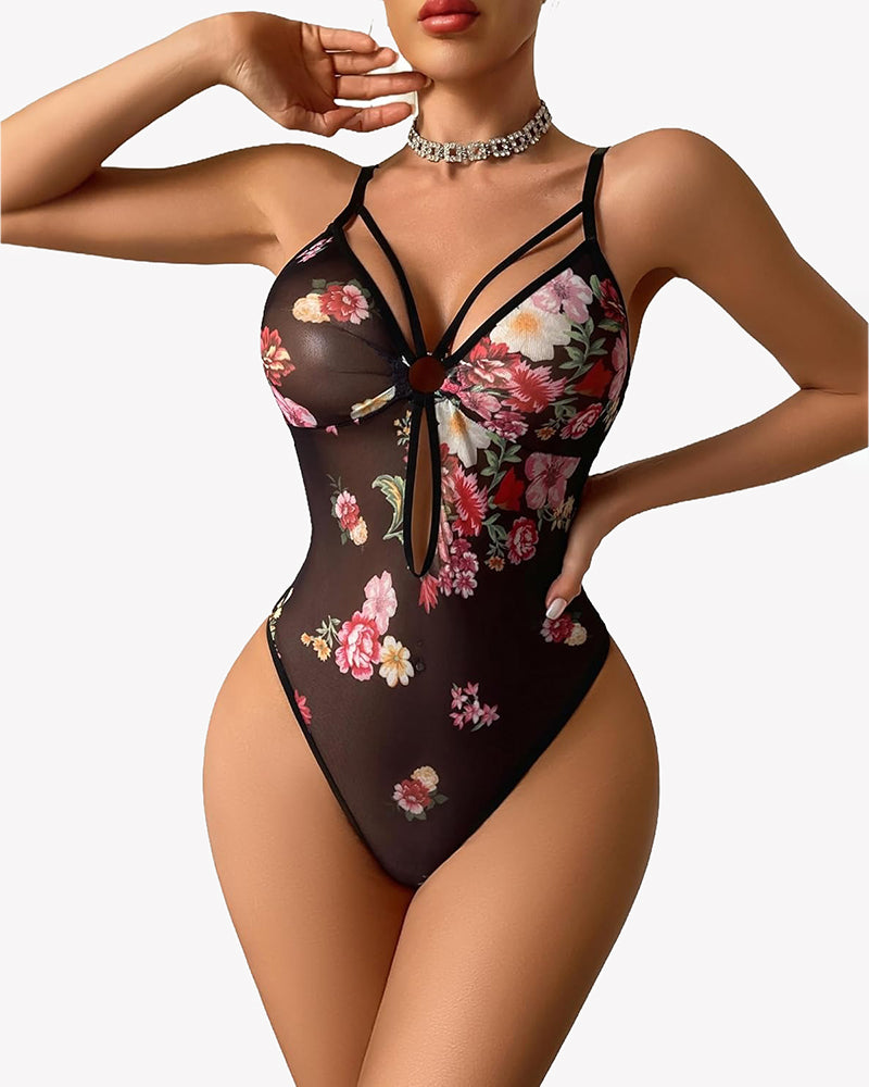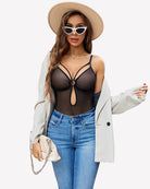Mesh Sheer Snap Crotch Strappy Bodysuit