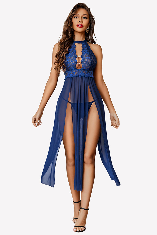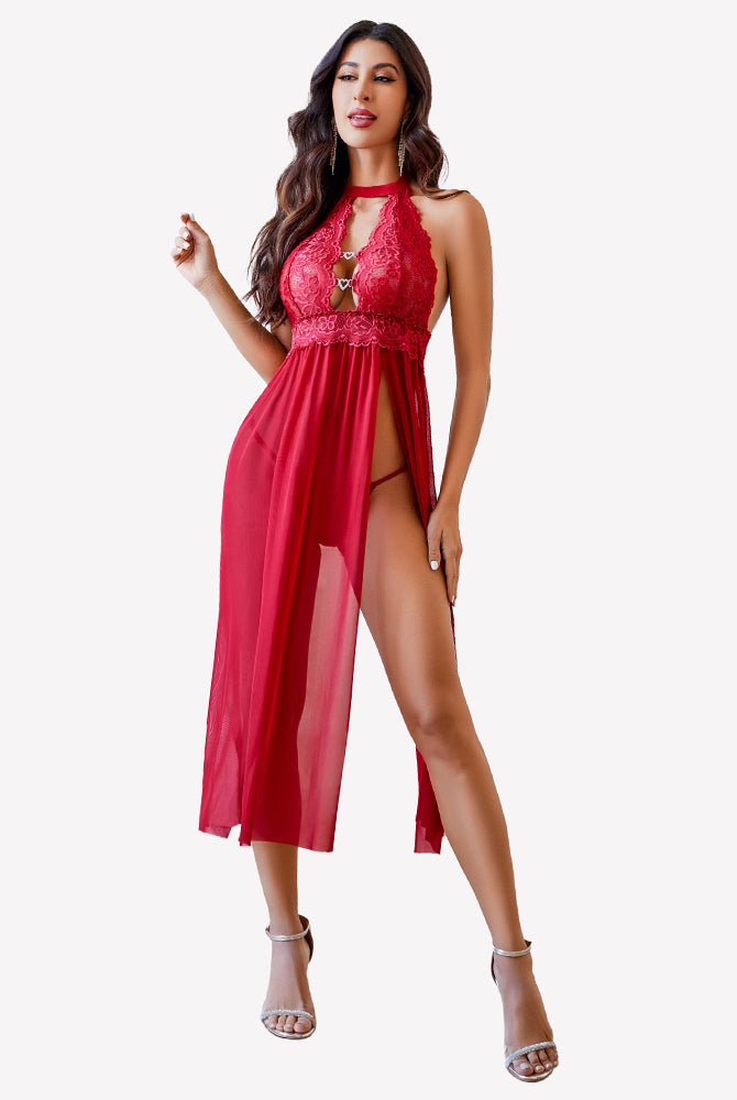 Mesh Nightwear Side Split Nightgown